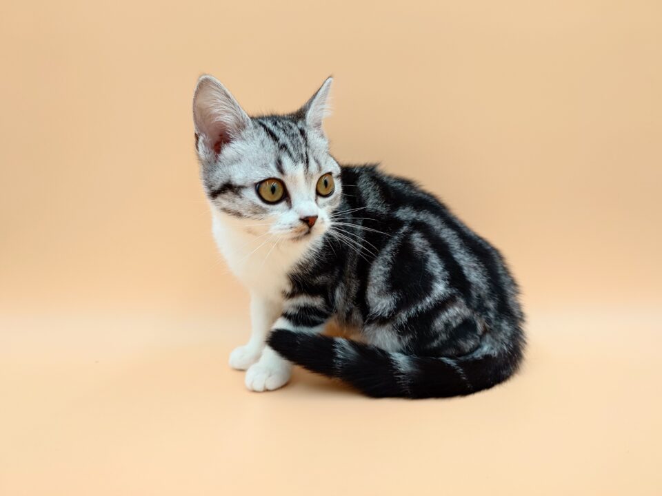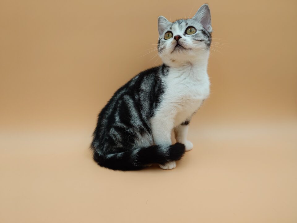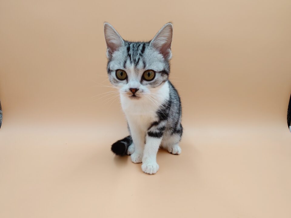 - 当店生まれのアメリカンショートヘアの女の子大変珍しいカラーのシルバータビー&ホワイト(バイカラー)です!