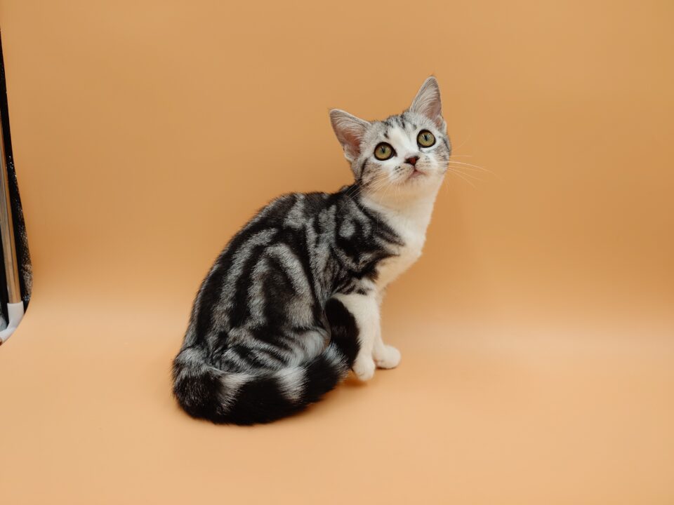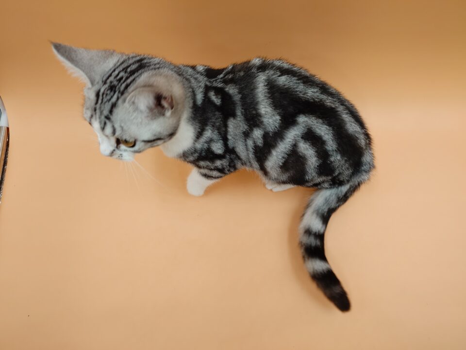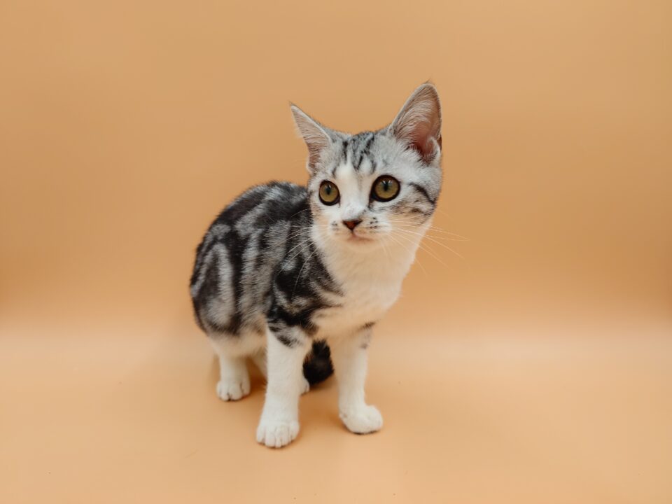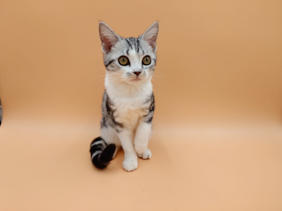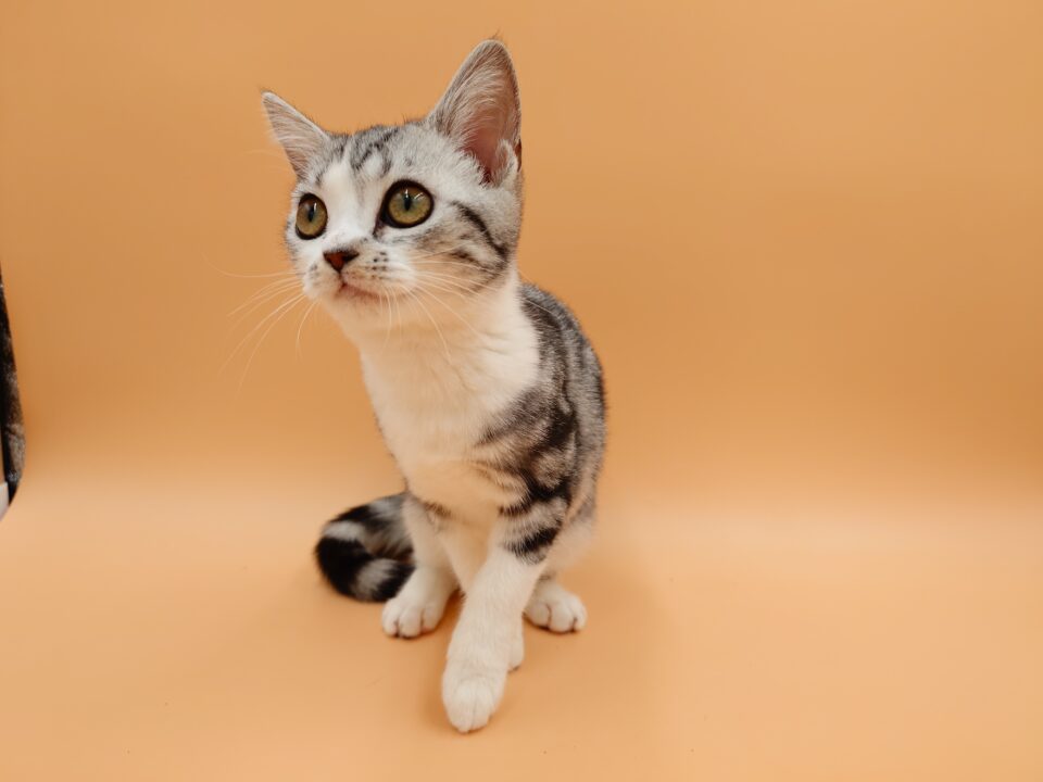 - 当店生まれのアメリカンショートヘアの女の子大変珍しいカラーのシルバータビー&ホワイト(バイカラー)です!